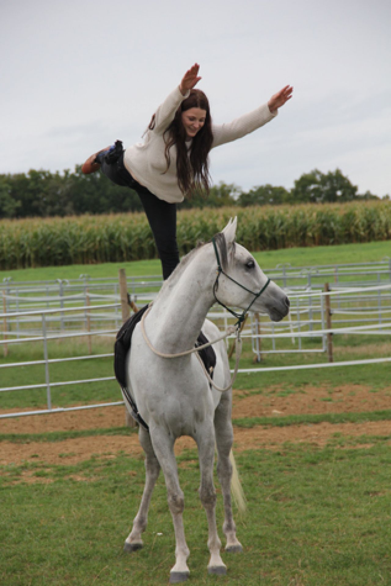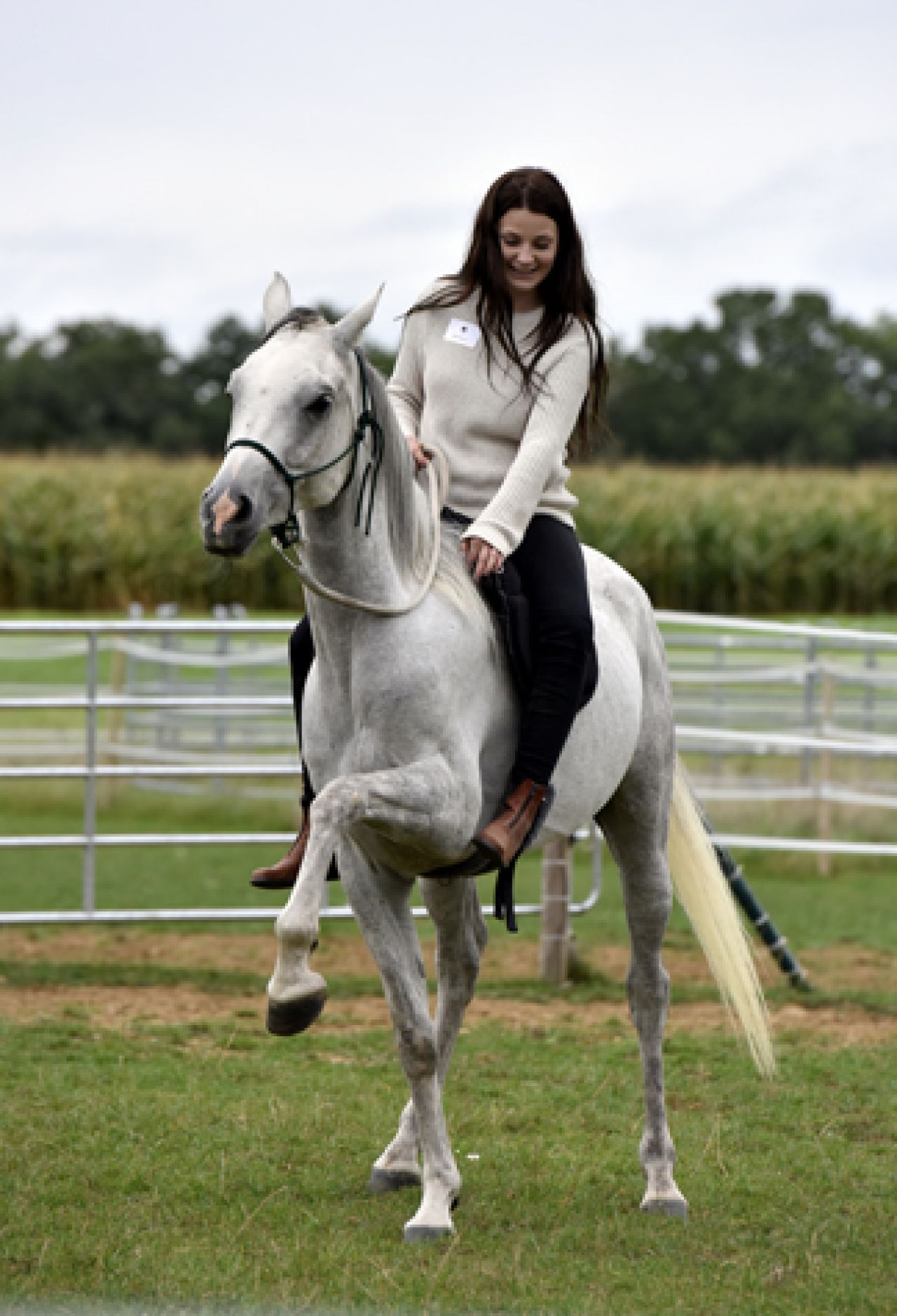 Dr. Astrid von Velsen-Zerweck, director of Marbach State Stud and member of the board, was unfortunately unable to attend because of foal inspections. We are grateful to state stud director Bert Petersen, who took over the commentary of the charming horses that were presented by Regine Astrid Kern and her daughter Nina. Before the actual presentation, state stud director Bert Petersen provided a lesson on the most important aspects of evaluating conformation, using the gelding Wallach Hamasa Mansour as an example. Even the more experienced breeders and friends were able to learn something new. Following this, Gudrun Irtzing presented two mares from her endurance breeding programme: GI Shafira and GI Sabaa. Both horses were shown ridden, but without saddles or bridles, controlled only by bedouin halters. The closing highlight was provided by Mara Schwarz with Hamasa Mansour, who performed circus tricks with only a knotted halter (see enclosed photo).