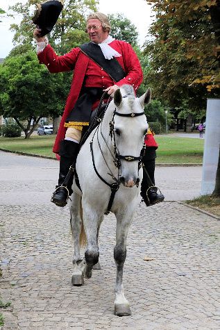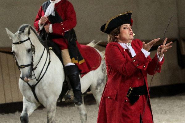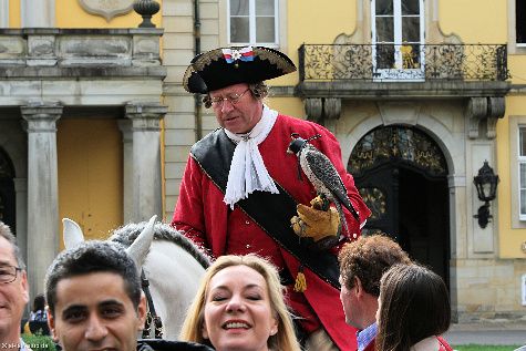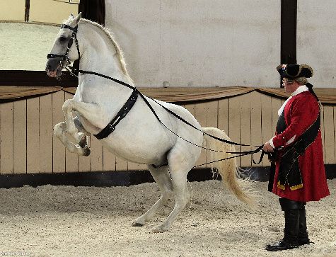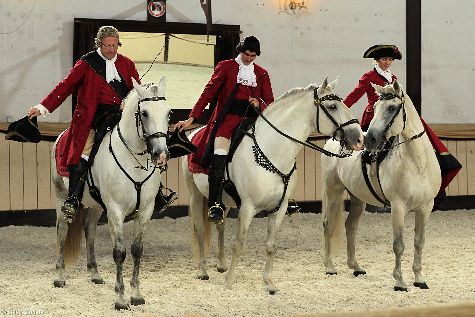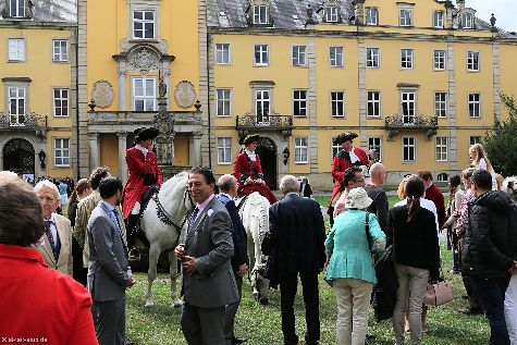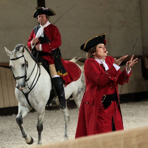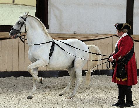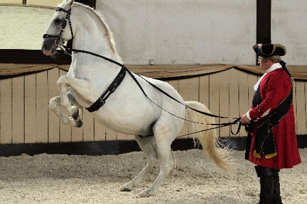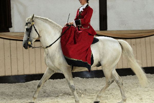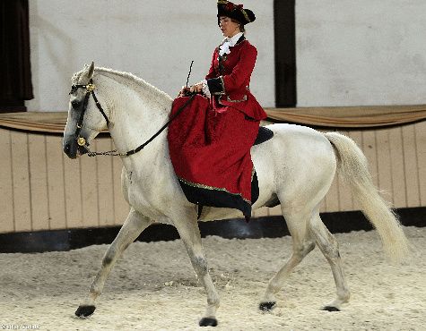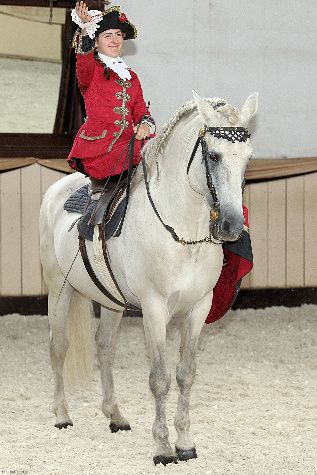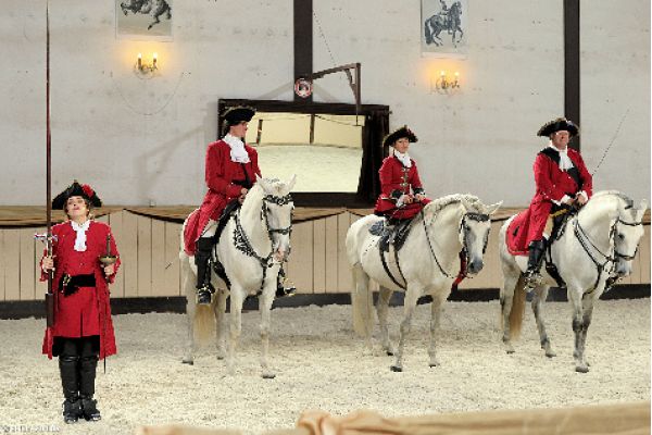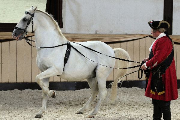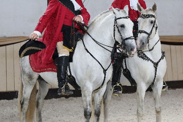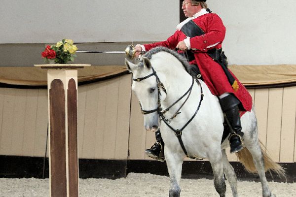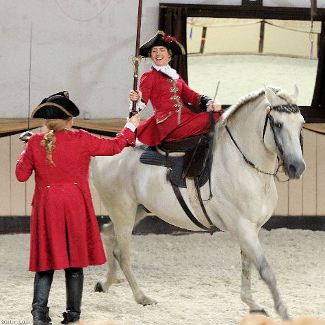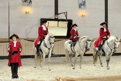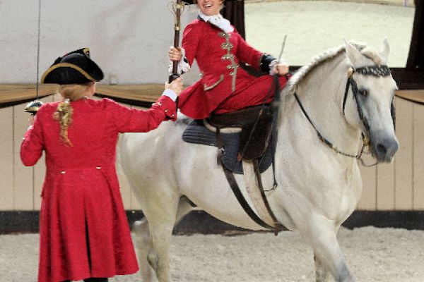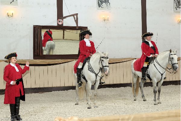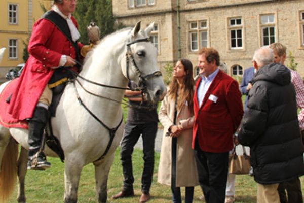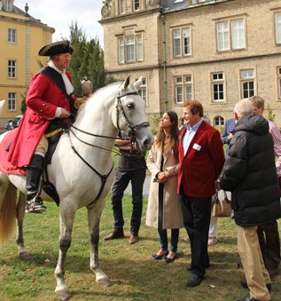 At 1:30 p.m., we met for a reception outside the riding arena, after which we admired the performance of the Fürstliche Hofreitschule. Mrs Christine Krischke gave a detailed commentary during the display of the various breeds, among other things on the history of classic equitation.