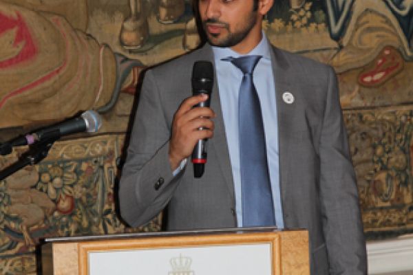 A special highlight was provided by the embassy of the UAE. Mr. Abdulla Al Hameli, Head of Public Diplomacy and Culture for Higher Education, welcomed the assembly and, on the occasion of the 100th birthday of Sheikh Zayed Bin Sultan Al Nahyan, announced the performance of two speakers and two musicians who, under the heading of „Words of a Bedouin,“ presented famous quotes that had been formulated by Sheikh Zayed in his day. The quotes in German and Arabic were accompanied by Arabic music on the Cello and the Oud, an Arabic lute. This was a particularly worthy and honouring performance, for which the chairman sincerely thanked the ladies and gentleman of the embassy, accompanied by the applause of the entire assembly.