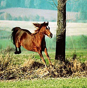 As a result of her training in dressage and Haute Ecole, Dahabí became a pack of muscles, she was bursting with health. No injury ever festered, her hooves and tendons showed no problems. She died in my arms at the age of twenty-nine; a painful death caused by complications of Cushing syndrome, after the failure of ovary activity. She was infertile (sterilitas ex causa ignota), Allah probably wanted it. Dahabí was the last of her kind, a living fossil. Today there are hardly any Bedouin left in Arabia, and hardly any desert horses, in the old sense of the words.