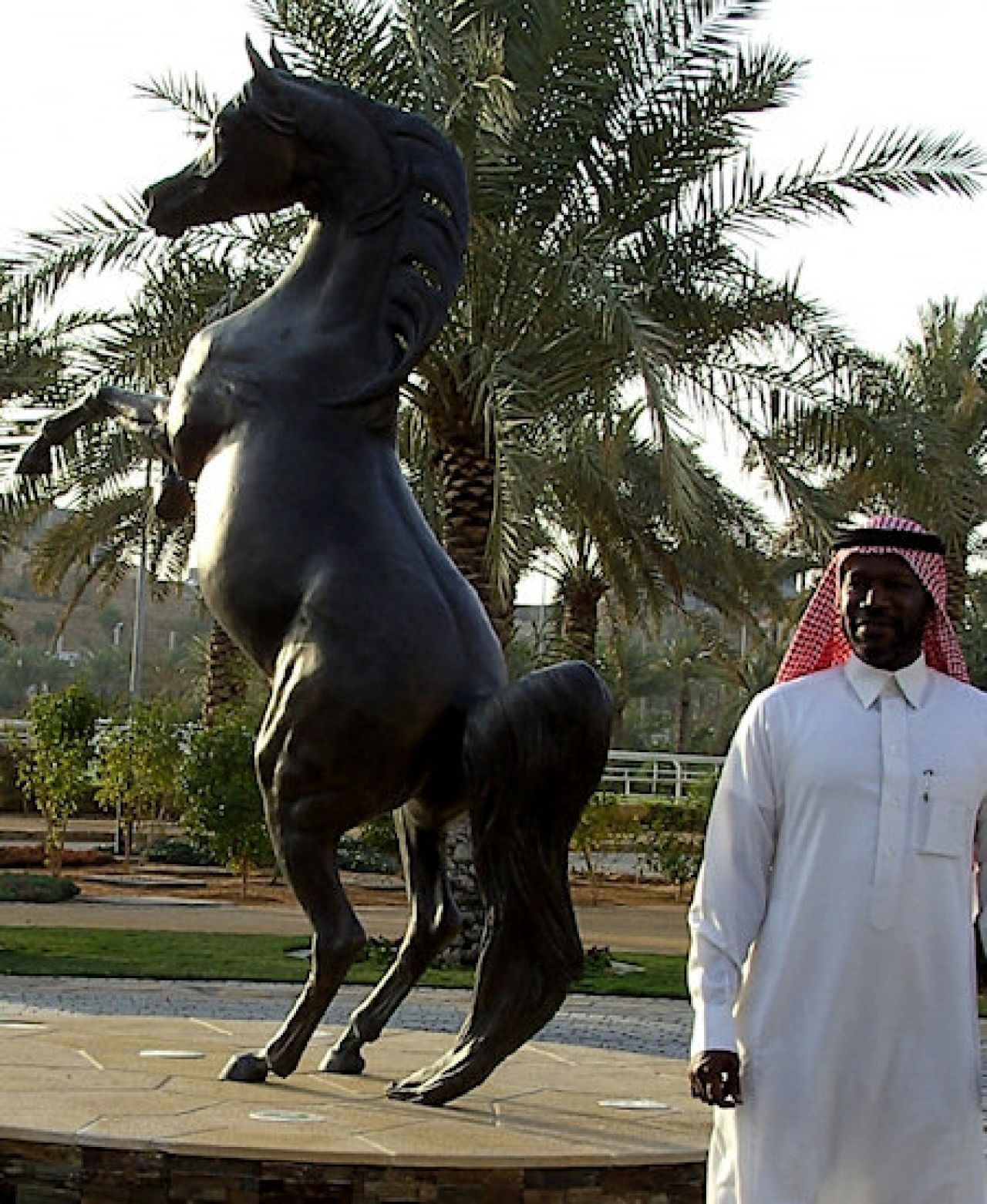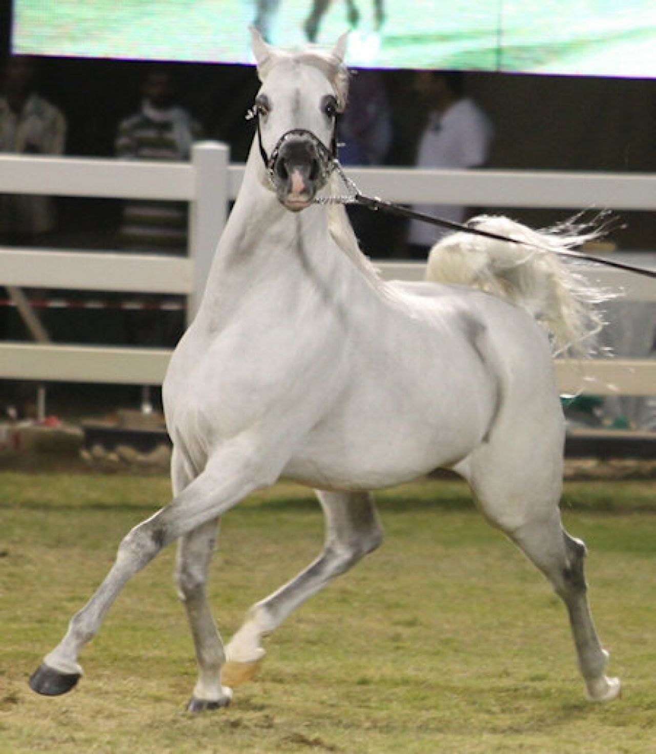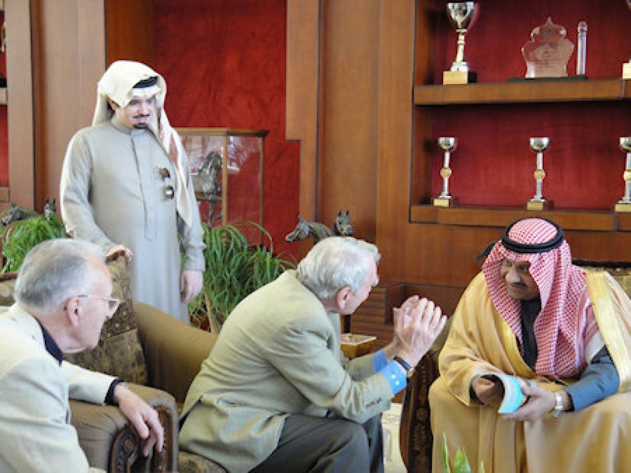 Ein Kontrastprogramm zu dem zuvor besuchten 4. Al Khalediah Arabian Horse Festivals auf der riesigen Farm S.K.H. Prinz Khaled bin Sultan Bin Abdul Aziz. Der Sohn des Kronprinzen gewährte beiden Vorsitzenden des Asil Clubs, Dr. W. G. Olms und Dipl.-Ing. Georg Thierer, eine halbstündige Audienz. Die dreitägige Schau war ganz nach westlichem Vorbild gehalten und viele weltweit bekannte Stars der Schauszene wurden vorgestellt. Auffallend war auch dort der große Enthusiasmus des Publikums, besonders für die sogenannten Desert Breds. Das Traditionsbewusstsein der Züchter geht in Saudi Arabien soweit, dass auch für die aus dem Westen importierten Pferde, seien sie asil-ägyptischer Abstammung oder die gemischten Linien der „Show-Araber“, der Mutterstamm angegeben wird. Dabei scheinen die Saudis besonders die Linien zu bevorzugen, die schon von ihren Vorvätern gezogen wurden: Hamdani Simri, Obeyan (Obeyan al-Saifi bei den Desertbreds und Obeyan Om Grees in der Ägypterzucht), Kuhailan Krush und Dahman Shahwan. Leider ist letztere Familie in den originalen Saudi-Linien ausgestorben, weshalb selbst Gestüte, die eigentlich Desert Breds züchten, auf Importe von ägyptischen Pferden zurückgreifen mussten. Prinz Turki bin Fahad bin Jiluwi, Nachfahre der Gouverneure von al-Hasa, zeigte uns auf seinem Gestüt eine Dahmah-Stute aus Amerika, AAS Sawannah. Sie geht allein auf saudische Linien zurück, die zum größten Teil aus der Zucht seiner Väter in Hufhuf stammen. Welch eine Freude zu erleben, dass die Erhaltung des asilen Blutes im Westen durch Asil Club und Al Khamsa solche Frucht getragen hat! Seltene Saudi-Linien, die nicht oder kaum in den Westen gelangten, sind Suwayti al Firm und schließlich Kuhaylan Abu Urqub, welche besonders im Staatsgestüt in Dirab gepflegt wird.