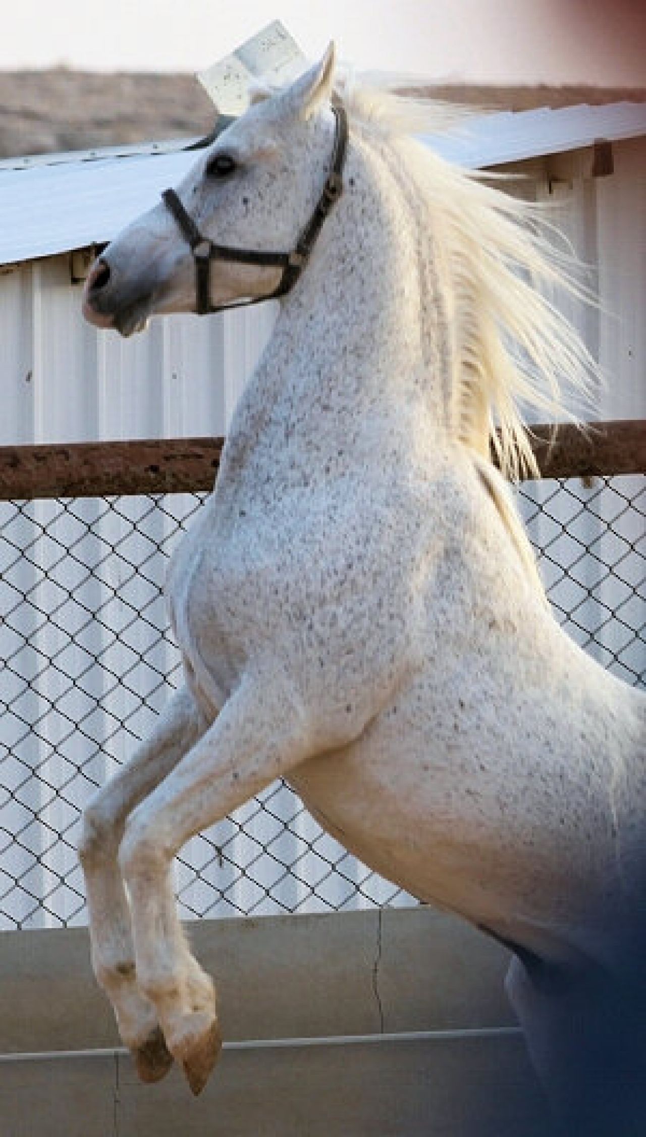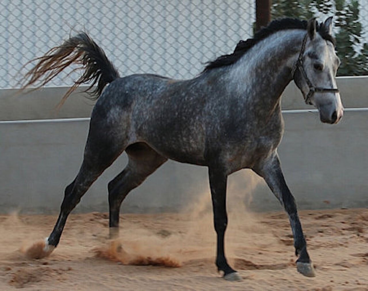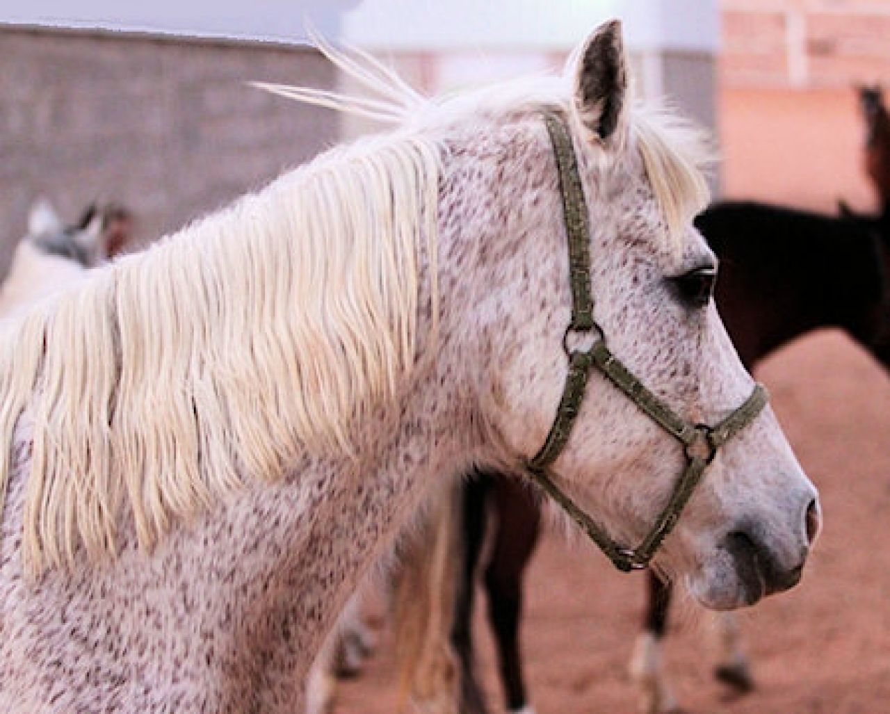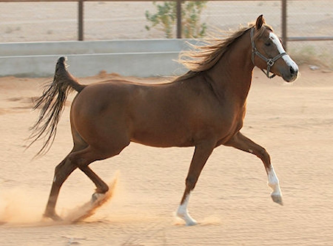 Vielleicht der Höhepunkt unserer Reise war der Besuch des Nejd-Gestüts von SKH Prinz Turki bin Fahd bin Abdallah Al Saud mitten in der Wüste nahe al-Kharj. Dort werden 300 Desert Breds und einige ägyptische Pferde aus dem Dahman Stamm einfach, aber pferdegerecht gehalten. Desert Breds und Ägypter waren auf den ersten Blick zu unterscheiden. Auffällig waren Stärke und Qualität des Fundaments der Saudis sowie erstklassige, das Reiterherz erfreuende, schwungvolle und elastische Bewegungen mit gutem Schub aus der Hinterhand. Die Hälse waren meist gut angesetzt und geformt, vereinzelt auch massiv ausgeprägt, fast wie bei den sog. Barockpferden. Neben vielen tiefrümpfigen Pferden gab es auch schmale, hochbeinige Typen. Der Kopf unterscheidet sie am stärksten von den modernen Arabern. Das Profil ist gerade bis leicht nach außen gebogen, selbst bei manchen Stuten. Trotzdem zeigten diese Tiere Adel und Trockenheit. Beeindruckend war insbesondere die Reihe der Zuchthengste, die uns vorgestellt wurden. Im Licht der untergehenden Sonne tanzten sie vor unseren Augen über den Wüstensand, voller Kraft und Anmut, lebendig gewordene Traumbilder. Sie hätten historischen Fotografien entsprungen sein können. Ein Typ Araber, der als Kriegspferd einmal Weltruhm genossen hat und der nicht in Vergessenheit geraten darf! Welch ein Vorrecht dies erleben zu dürfen! Welch ein Erbe, das hier bewahrt wird!
