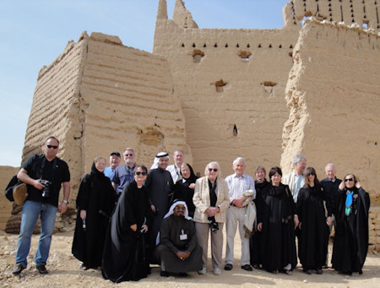 Nur ein Flug von nicht einmal sieben Stunden trennt uns noch von dem sagenumwobenen Hochland des Nejd, der Wiege des Arabischen Pferdes, das für Generationen von an Arabitis erkrankten Züchtern und für manchen Abenteurer und Entdecker früherer Zeiten das fast unerreichbare Mekka ihrer Träume gewesen war. Denken wir nur an Lady Anne Blunt, die 1875 als erste Europäerin in dieses verschlossene Land gelangen konnte und die ihren Reisebericht nicht von ungefähr unter dem Titel „A Pilgrimage to Nejd“ veröffentlichte. Heute, zu Beginn des 21. Jahrhunderts, sind nicht strapaziöse und gefährliche Reisewege, sondern die Verschlossenheit des Königreichs Saudi Arabien für Nicht-Muslime das Haupthindernis. Doch die Liebe zum Arabischen Pferd kennt keine Grenzen. Zum Sesam-Öffne-Dich wurde die freundliche Einladung durch unser Mitglied, S.K.H. Prinz Sultan bin Salman bin Abdul Aziz Al Saud. Prinz Sultan ist Präsident der Saudi Commission for Tourism and Antiquities, war Schirmherr über den Asil Cup International 1986 und erster arabischer Astronaut. Neben dem durch viele Aufenthalte im Land erfahrenen Dr. Olms betraten Ende Januar fünf Vorstandsmitglieder sowie zehn weitere Züchter und Freunde des Asil Clubs Neuland. Hansi Heck-Melnyk und Terence und Rosi Doyle waren sogar aus Amerika angereist. Für Hans-Jürgen Gottet jedoch war es eine Reise in die Vergangenheit, hatte er doch zusammen mit seiner Frau mehrere Jahre in Riyadh gelebt und gearbeitet. Der Schweizer bereicherte unsere Gruppe aus seinem reichen Schatz an Erinnerungen und Insiderwissen. Wie er damals mit seiner Frau heimkehrte, wäre ein ganzes Buch wert: Elf abenteuerliche Monate auf dem Rücken zweier Asilaraber, von der Wüste in die Alpen!