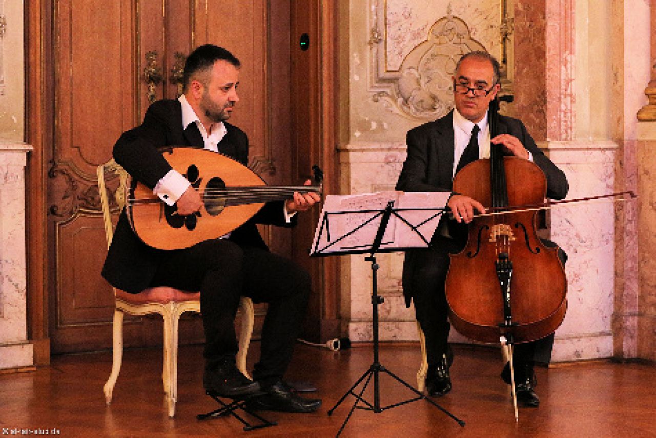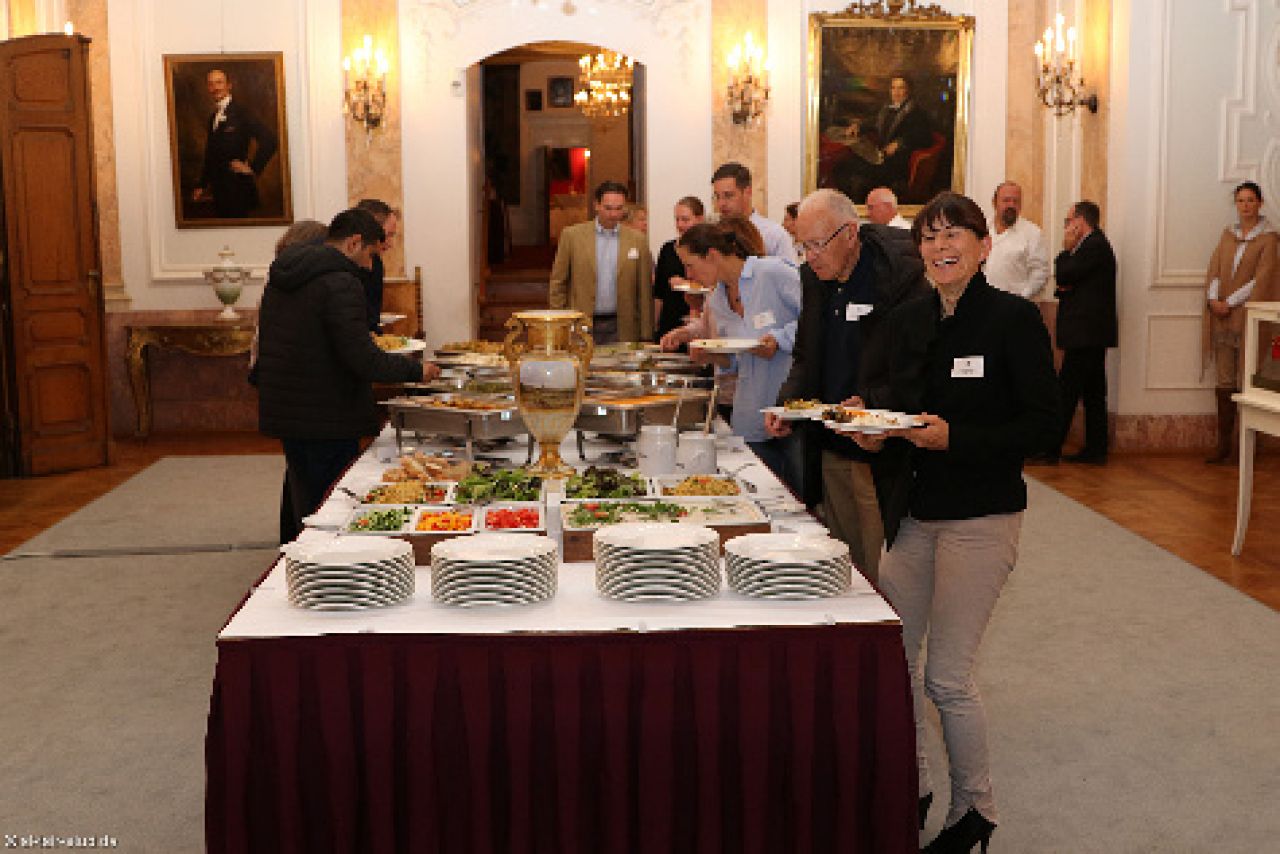 Abgerundet wurde der Abend durch ein festliches Dinner im prunkvollen Festsaal des Schlosses. Bei Köstlichkeiten vom Buffet der „Alten Schlossküche“ hatten die Mitglieder Gelegenheit zum Erfahrungsaustausch und geselligen Beisammensein, begleitet von arabischer Musik, dargeboten erneut durch die beiden Musiker aus Berlin.