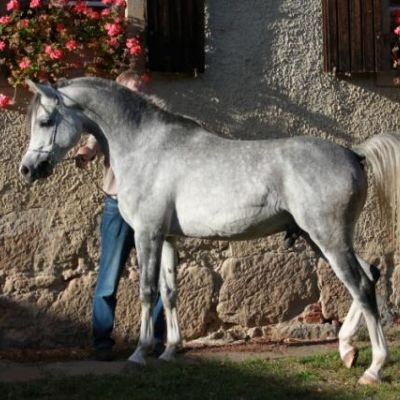 Im klassischen Typ stehender Ausnahmehengst voller männlicher Kraft und Harmonie. Ein perfekt geformter und hoch angesezter Hals, eine riesige Schulter, ein absolut korrektes Exterieur und weit ausgreifende Bergaufbewegungen überzeugen. Toller Charakter!